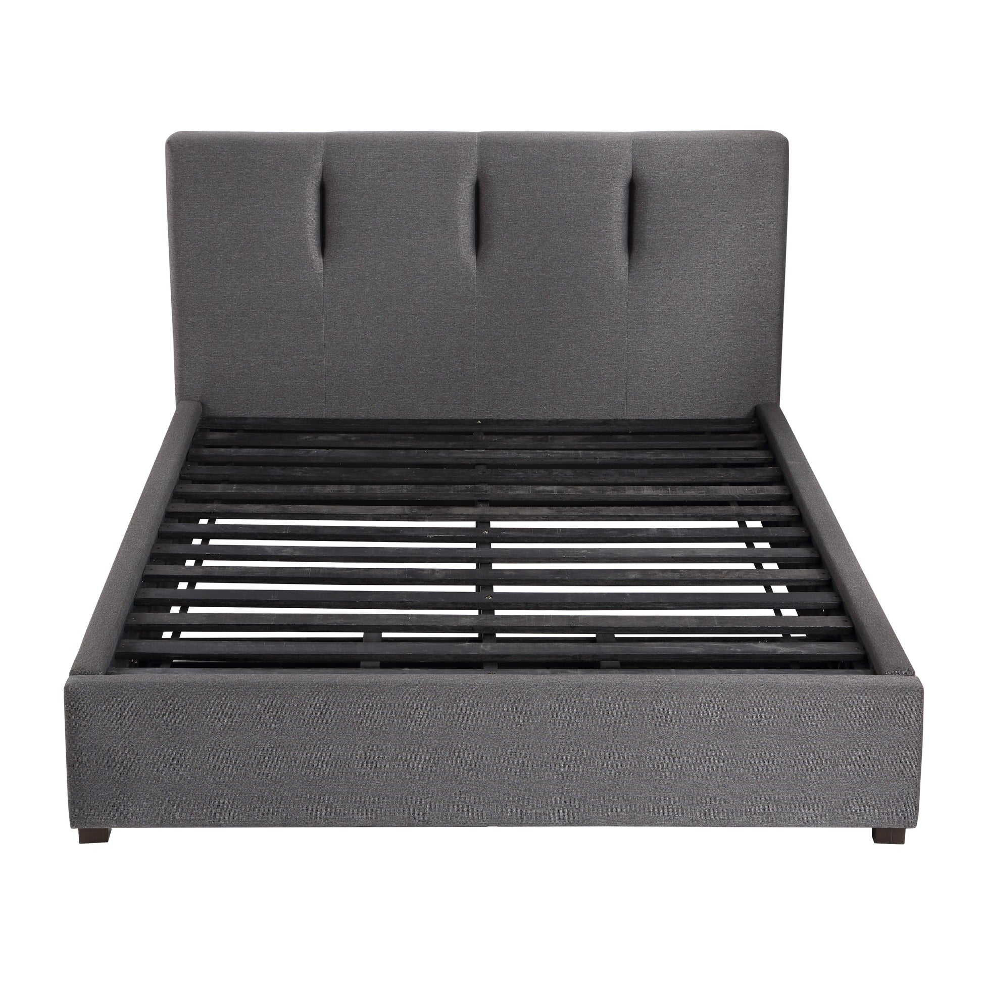 The streamlined design of the Aitana Collection provides a functional focal point for your bedroom. With styling that lends to placement in modern environments, the upholstered bed’s profile is defined by its low-profile and graphite-hued linen-like fabric for neutral accent to your bedroom’s modern decor. The queen platform bed’s low-profile footboard conveniently pulls out to reveal a storage drawer, providing functional space to store your essentials