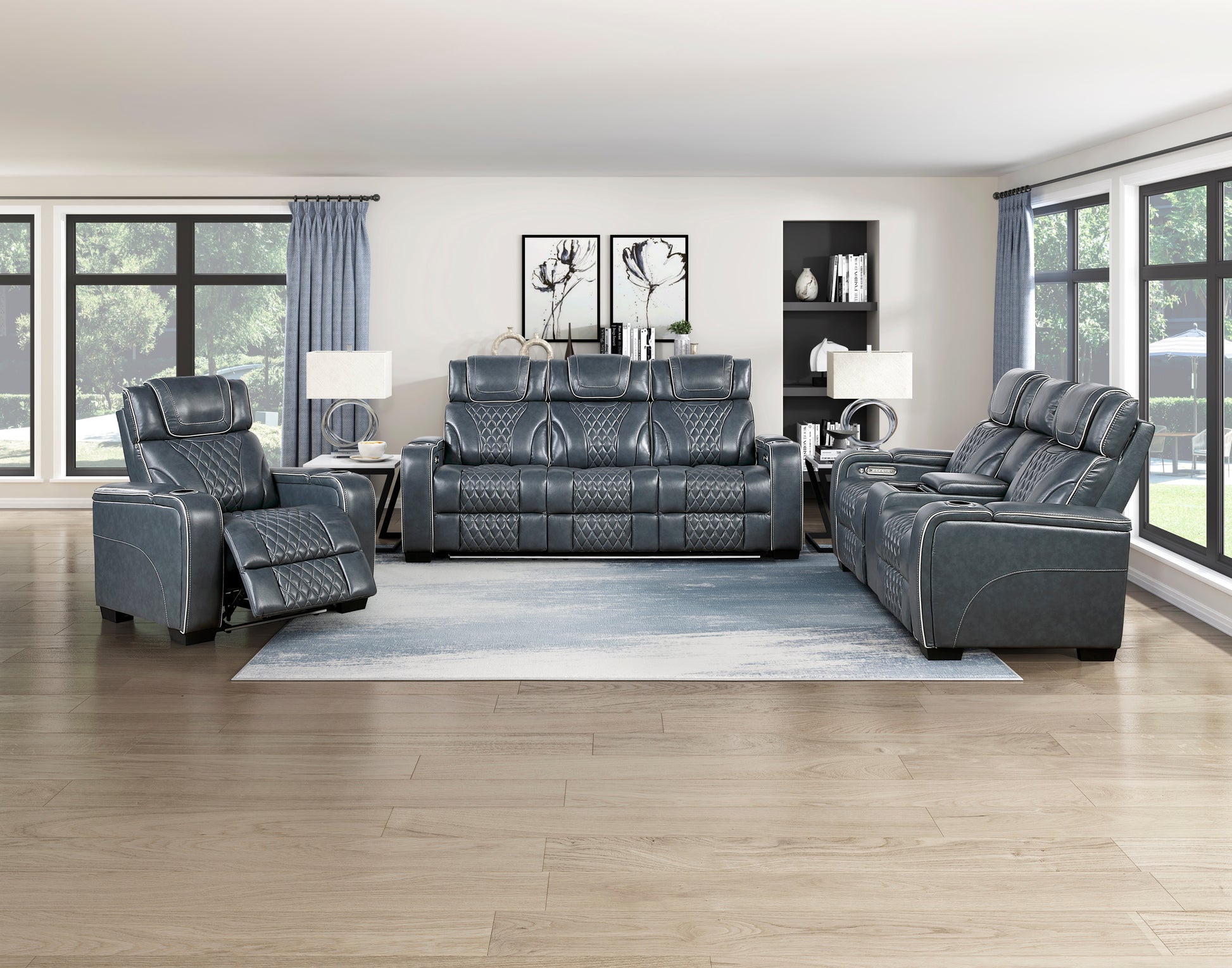 Apex Power Reclining Sofa W/ Heat & Massage BLUE LEATHER