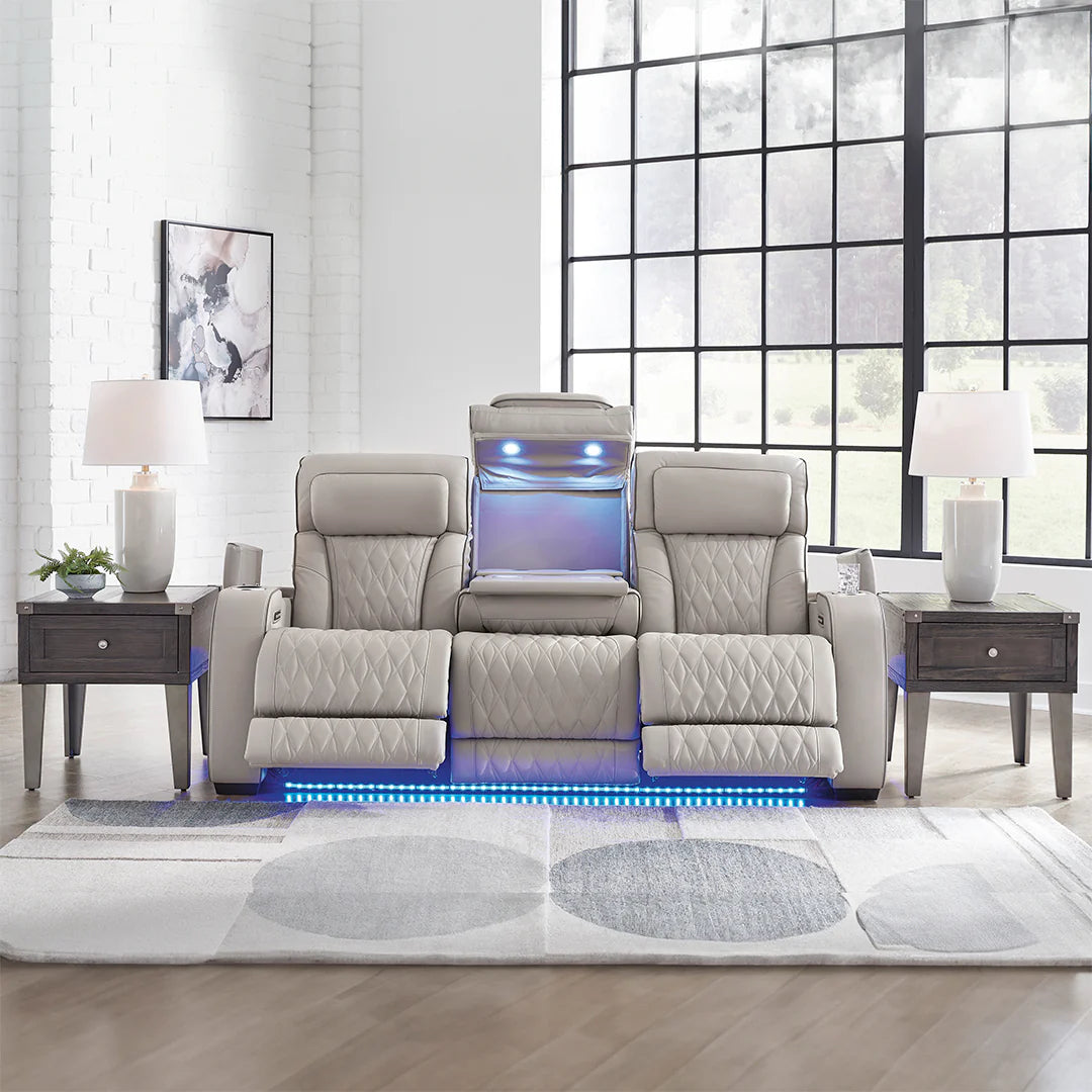 Boyington Dual Power Leather Reclining Sofa GREY LEATHER