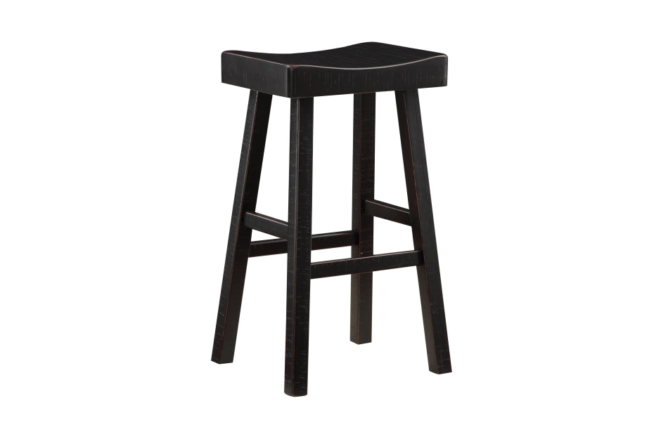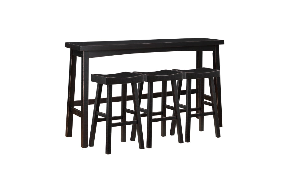 Stylistically versatile for placement in your home’s casual dining space, the transitional design of the included three 29-inch contour-seat barstools and 42-inch bar-height table is complemented with rusticated accent, subtle profile, and three optional neutral finishes - two-tone black and brown, two-tone white and coffee, or black rub-through - to make the Caspian Collection a perfect choice for your dining needs