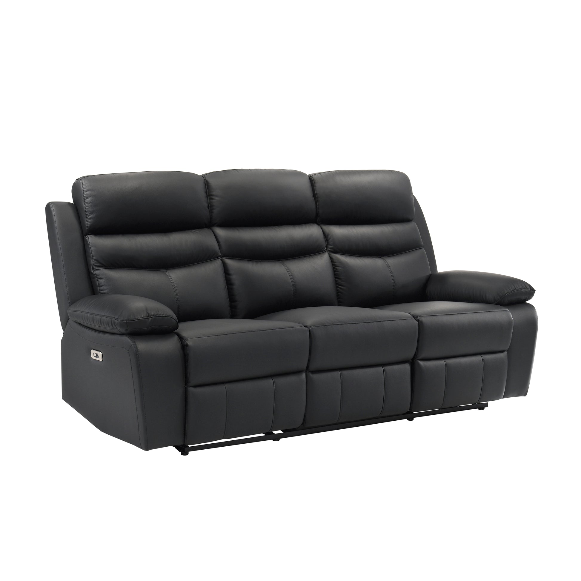The Hancock Collection’s versatile look, paired with the feel of top grain leather and power reclining, will help to create a welcoming and comfortable space within your home. The dual reclining ends of the sofa are engaged with a touch to the side mounted power controls. The subtle modern frame of the sofa is covered in 100 percent top grain leather where the body touches, with faux leather covering the remaining areas, its black hue complementing your home’s décor.