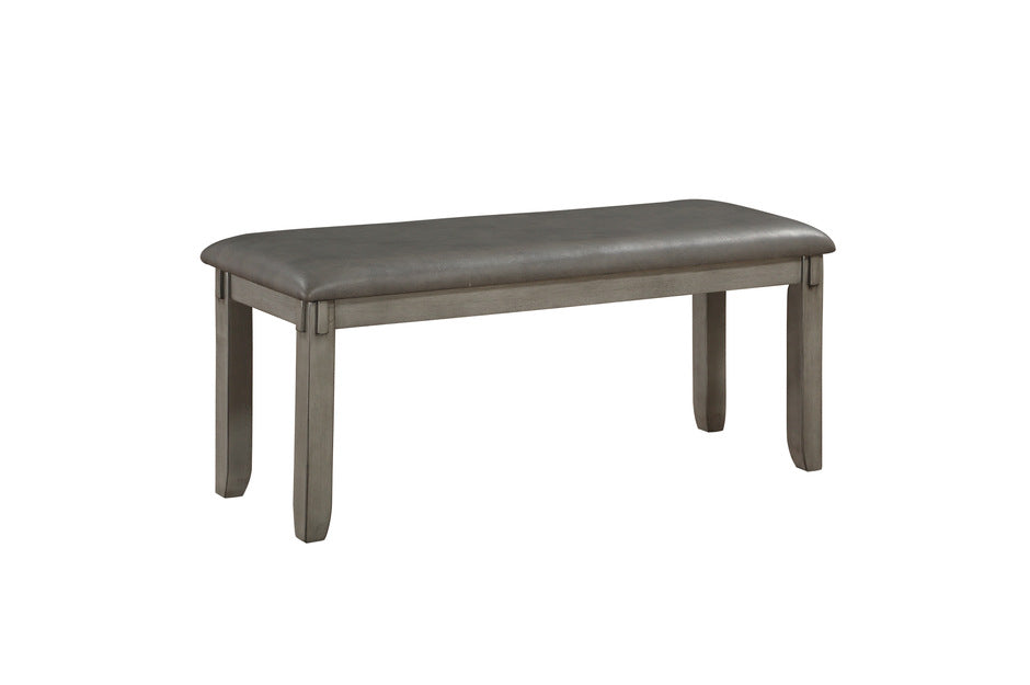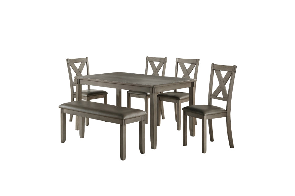 Designed in the transitional style for your casual dining space, the Holders Collection will be a welcome space for your friends and family to gather during meals and social activities. The convenient 6-piece packaging of the collection includes a table, four chairs and a bench. X-back, wood frame chairs perfectly complement the understated design of the table. Light, neutral tone seats create complementing contrast to the gray finish of the collection