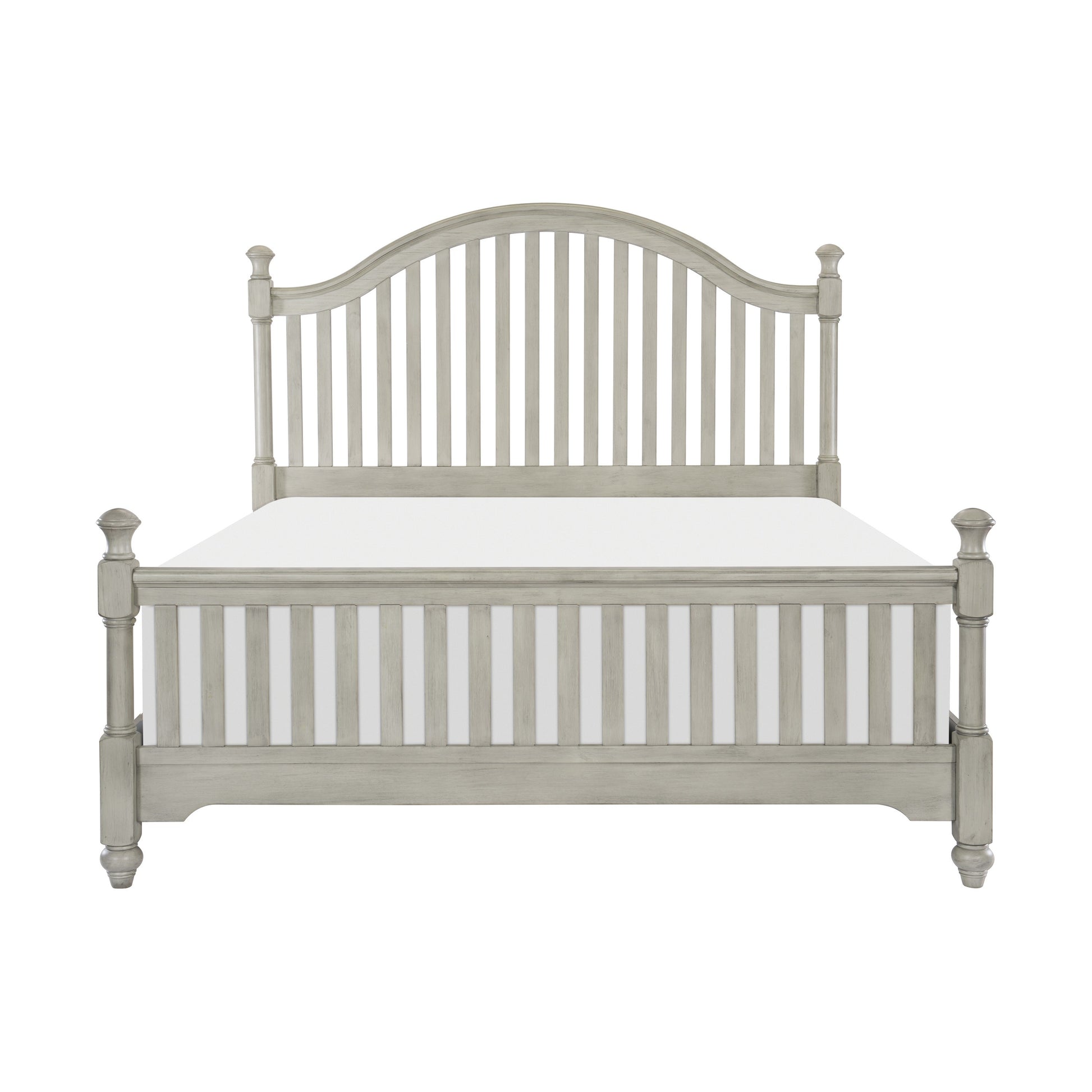 In nod to modern farmhouse design, the Mossbrook Collection features a classic profile that will be a perfect addition to your home’s décor. The pine solids and oak veneer of the collection feature a light gray finish, subtly highlighting the wood’s grain. The vertical slats of the low-post queen bed lend classic styling to the collection, their heights following the curved profile of the headboard and footboard, each corner topped with a turned finial