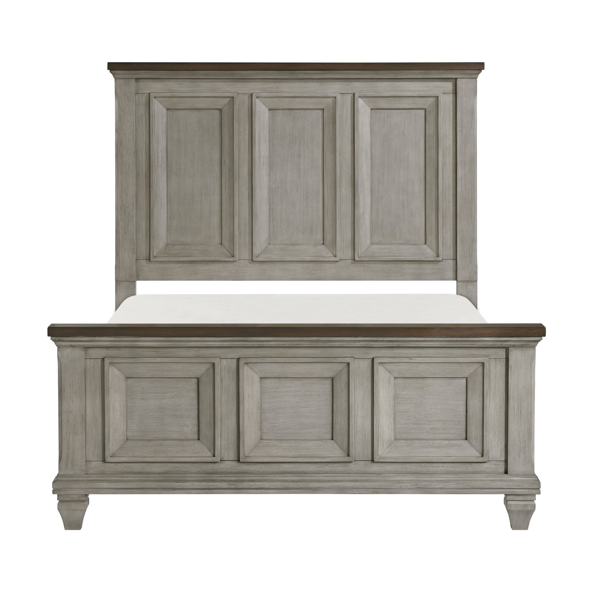 Add a touch of rustic elegance to your bedroom with this stunning two-tone panel bed. Crafted from durable acacia veneers, solid wood, and engineered wood, this queen bed frame showcases a beautiful blend of brown and antique gray finishes, creating a warm and inviting focal point. The paneled headboard and footboard feature a classic design, adding depth and character to the overall aesthetic. Designed for stability and support, this bed requires a foundation or box spring, ensuring optimal mattress comfort. This bed includes a headboard, footboard, and rails, providing a complete framework for your sleeping sanctuary. Assembly is required