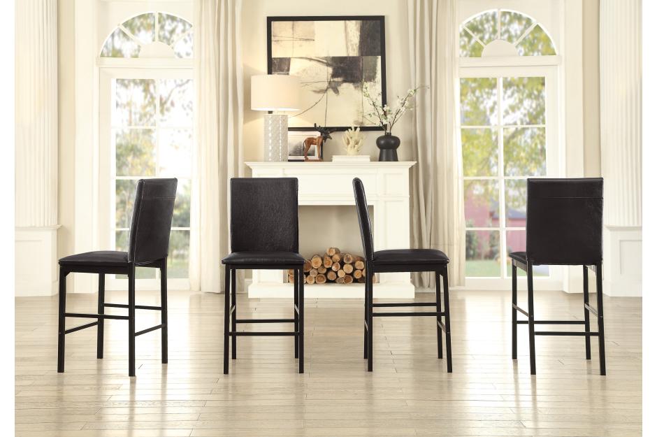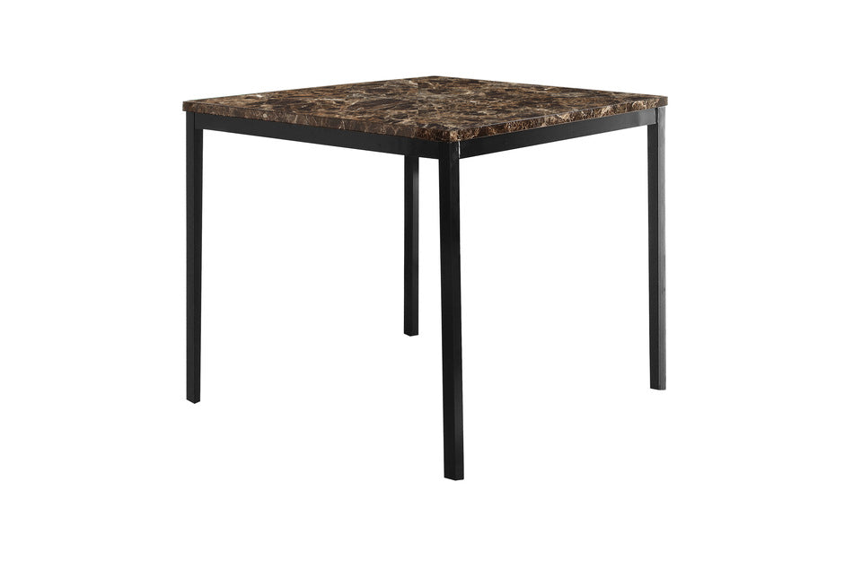 With a scale appropriate for any number of smaller dining spaces, the Tempe Collection will provide the look and style you want in your home. The transitional feel of the group comes from the richly hued faux marble table top and the minimalistic design of the brown faux leather chairs. The counter height table and chair are constructed of metal in black finish.