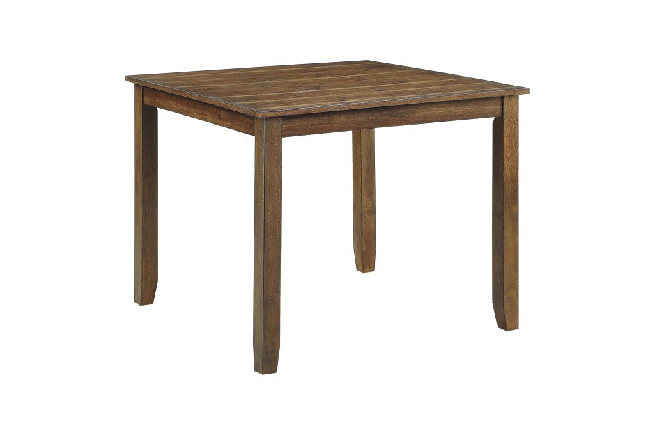 The transitional styling of the Weston Collection is paired with convenience to create a dining set scaled for your casual home. The 5-piece collection includes a traditional dining height table and four chairs. The acacia veneer of the group is finished with a medium brown and is complemented by the brown faux leather of the chair seats