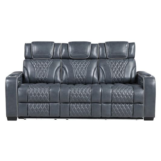 Apex Power Reclining Sofa W/ Heat & Massage BLUE LEATHER
