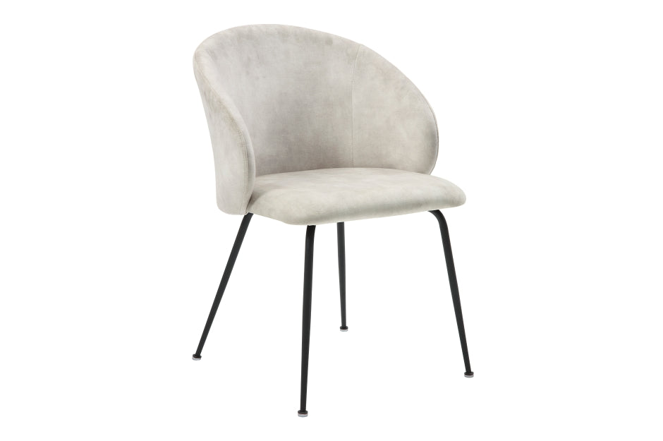 The classic look of the tulip base comprises the modern profile of the Cosimo Collection. The black metal table base rises to support the marble print tempered glass tabletop, its white hue an elegant complement to your dining room’s décor. Pairing with the table are velvet-covered side chairs, offered in a range of hues including teal, mustard, brown, and beige. The side chairs feature black metal legs