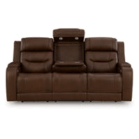 Knightington PWR REC Leather Sofa w/Audio Seating BROWN