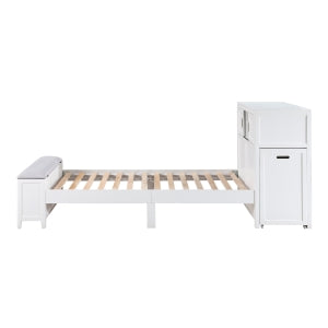 Sloane Twin Bookcase Platform Bed with Hidden Desk, Stool and Storage Bench