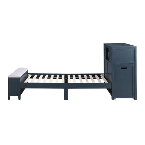 SloaneTwin Bookcase Platform Bed with Hidden Desk, Stool and Storage Bench NAVY BLUE