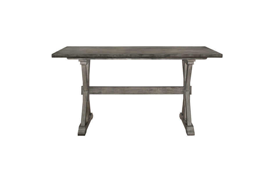 Creating a subtle rustic look is the design of the Amsonia Collection. A gray finish graces the solid rubberwood dining group highlighting the veneer. Providing visual interest beyond the classic styling, are the alternate finishes of the accompanying chairs, offered in black sand-though and white sand-through. The chairs also feature a swivel mechanism with three distinct seat backs – X-back, divided X-back and vertical slat back, lending to ease of motion while seated